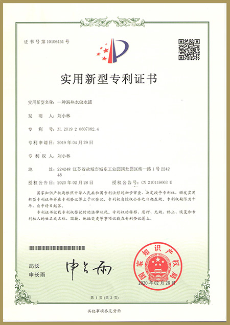 • Warm water storage tank